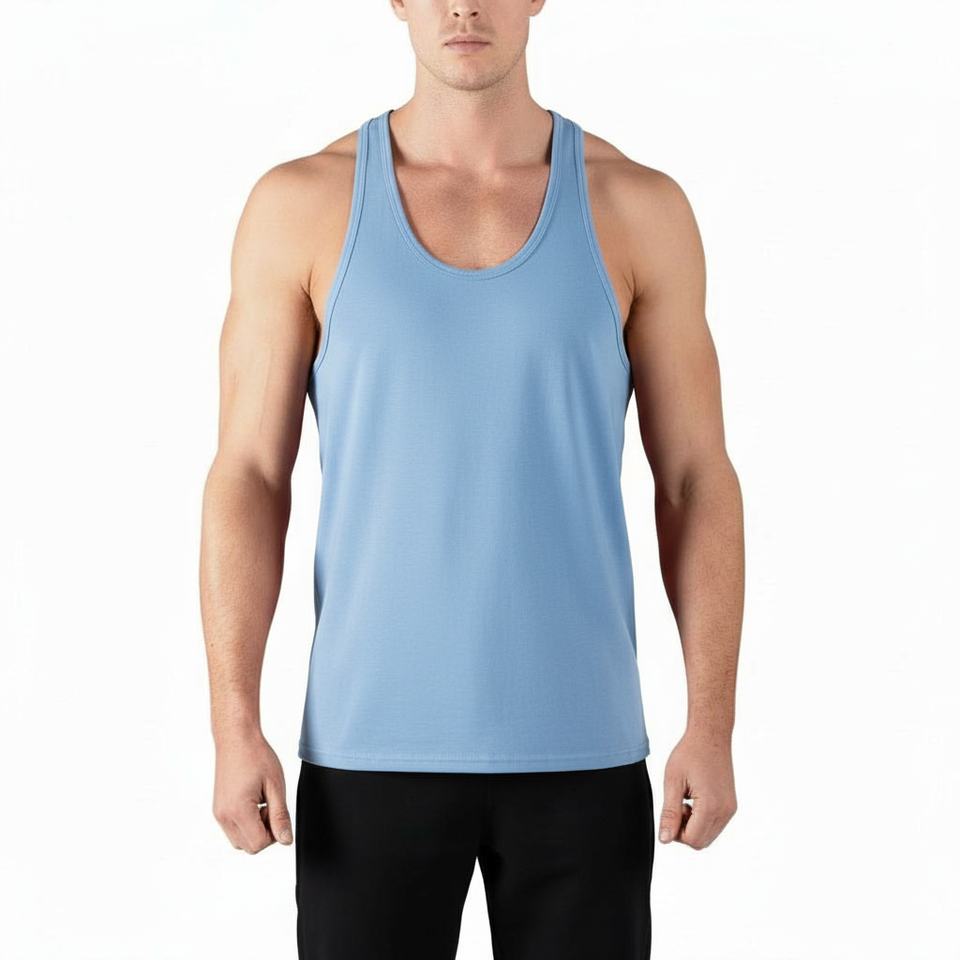 Camiseta Deportiva Personalizada para Hombre, Estilo Racerback, de Alta Calidad, Holgada, de Color Sólido, Sin Mangas, para Gimnasio, Hecha de Tela de Algodón