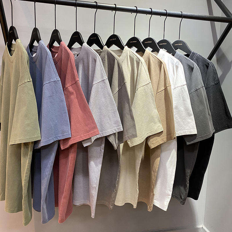 Camiseta Personalizada para Hombre con Estampado Abstracto, Lavado Ácido, Estilo Retro, Camiseta de Algodón Grueso para Hombre, Estilo Hip Hop Vintage