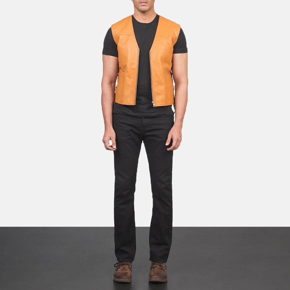 Chaleco de cuero marrón tostado personalizado para hombre con cuello en V ropa informal transpirable prendas de vestir exteriores para Chaleco de cuero de invierno