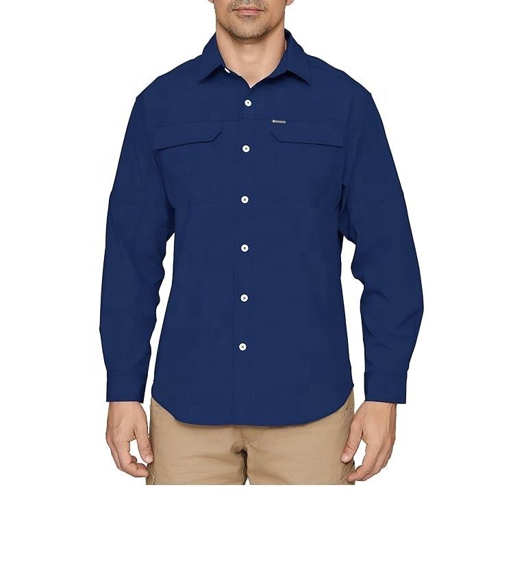 Camisa de exterior con botones de secado rápido para hombre personalizada UPF 50 + de talla grande manga larga impermeable protección solar senderismo pesca Camping
