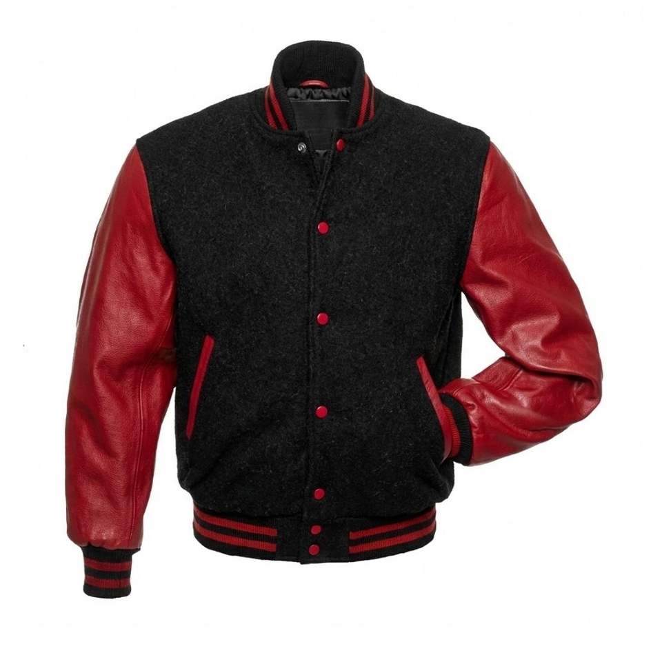 Chaqueta Varsity Personalizada para Hombre, Cuerpo de Lana, Mangas de Cuero, Color en Contraste, Uniforme de Béisbol, Chaqueta Bomber, Fabricante OEM