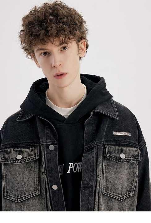 Abrigo negro lavado a la piedra vintage personalizado para hombre, chaqueta vaquera de calle, chaqueta vaquera de gran oferta unisex
