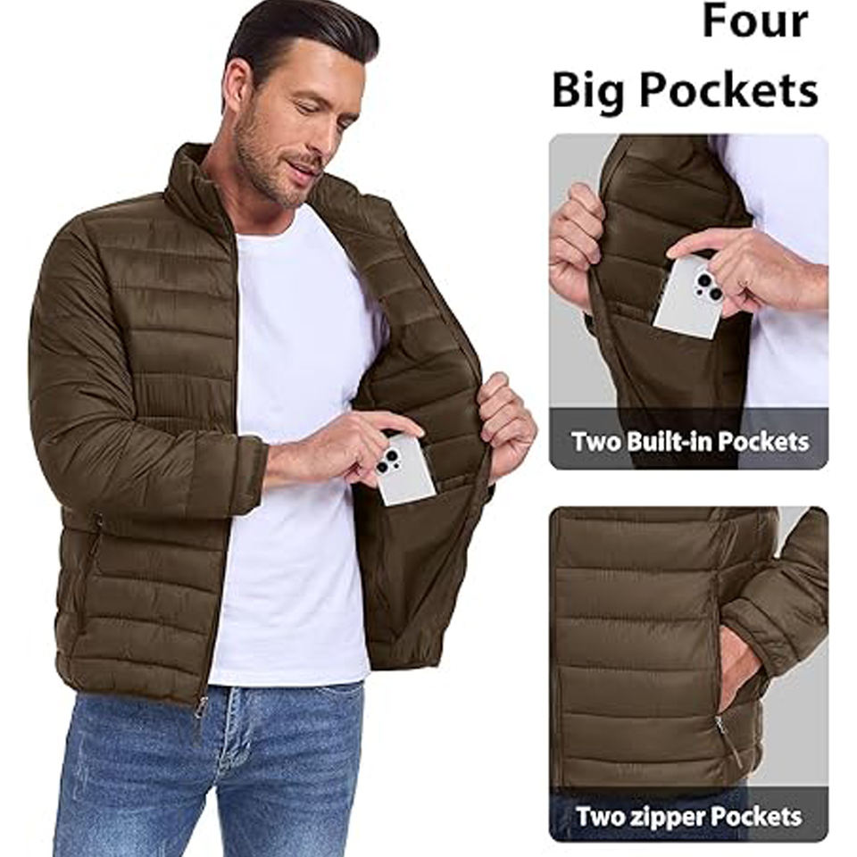 Chaqueta de Plumón Personalizada para Hombre, Chaqueta de Invierno con Cierre Completo, Resistente al Viento, Color Marrón, Chaqueta de Plumón de Moda, Cálida, con Logotipo Personalizado, Envío DDP