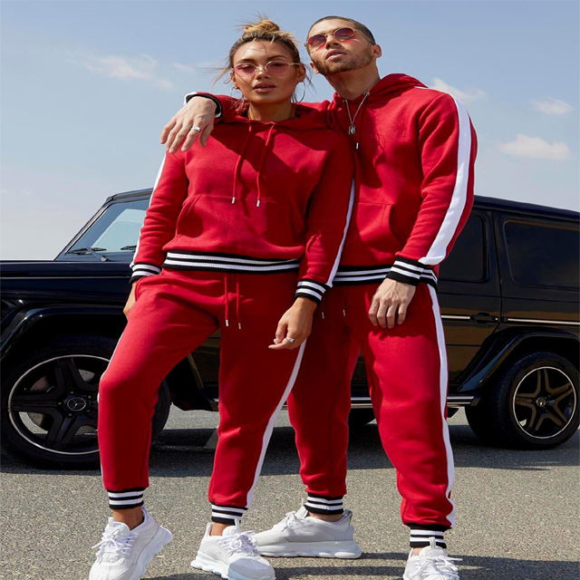 Chándal de lana de algodón de 2 piezas personalizado para hombre, ropa de calle informal ajustada de línea larga con rayas laterales, ropa de invierno con logotipo para adultos