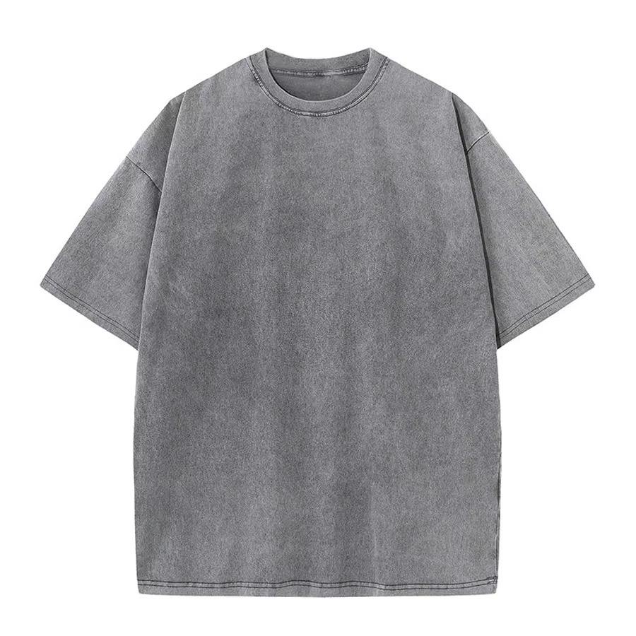 Camisetas de lavado ácido personalizadas para hombre 100% algodón Vintage en blanco Jersey de gran tamaño para tallas grandes Color negro