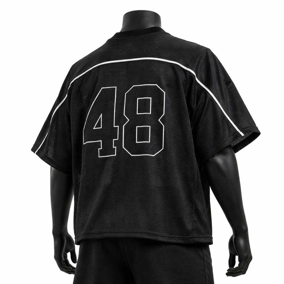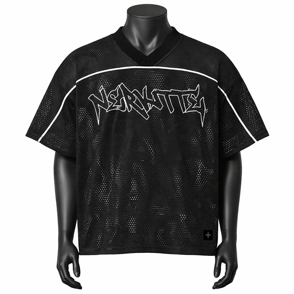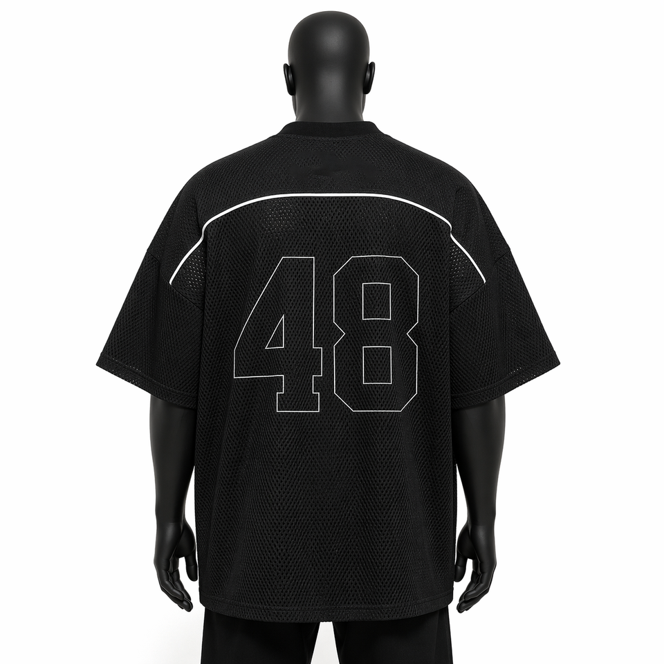 Camiseta de hombre personalizada de corte cuadrado oversize de poliéster estilo streetwear al por mayor, camiseta de malla tipo jersey, top corto para hombre