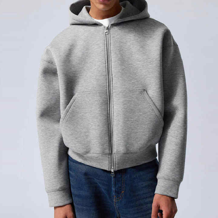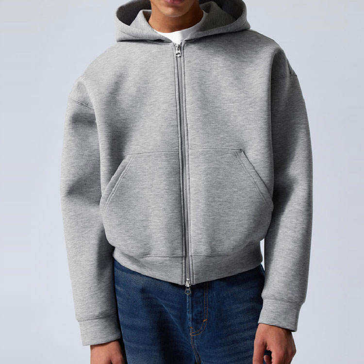 Personalizado de los hombres Boxy recortada Zip Hoodie Heavyweight French Terry de alta calidad 500gsm algodón Full Zipup Hoodies