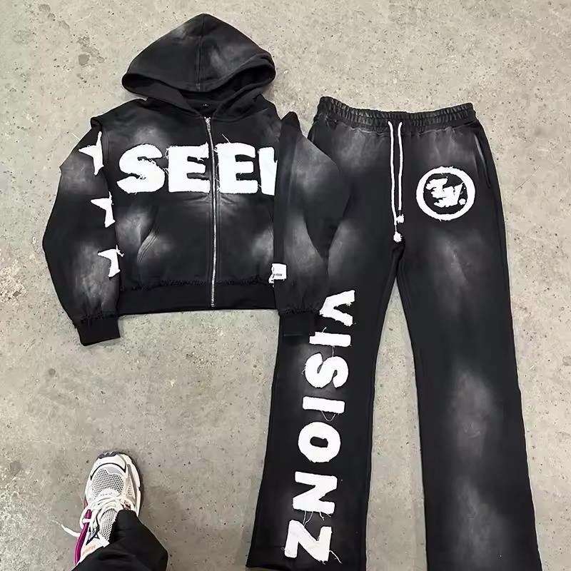 Sudadera con capucha para hombre personalizada Boxy Fit Oversized Acid Wash Zip de tela pesada con estampado de llama desgastada estilo Hip Hop