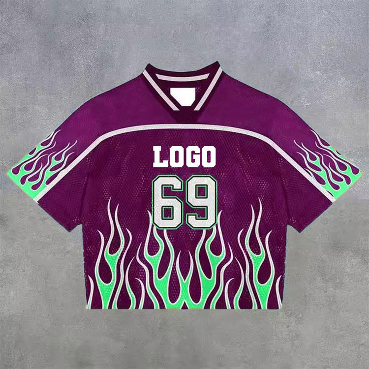 Camiseta de Fútbol Oversize Personalizada para Hombre, Estilo Retro Americano, Malla Transpirable, Diseño Único, Estampado Urbano