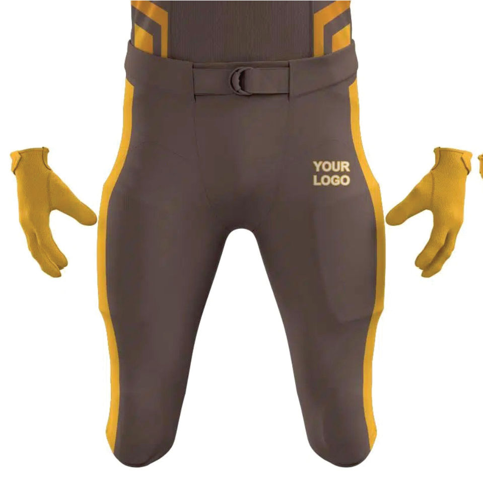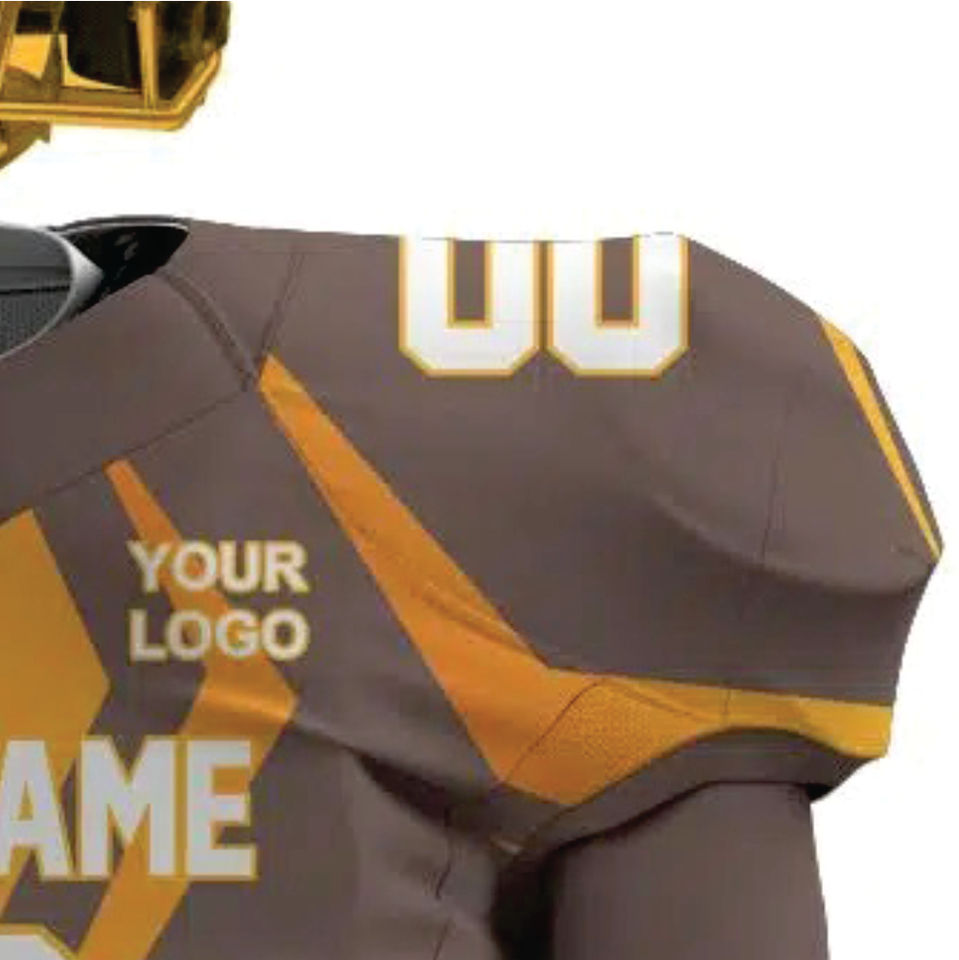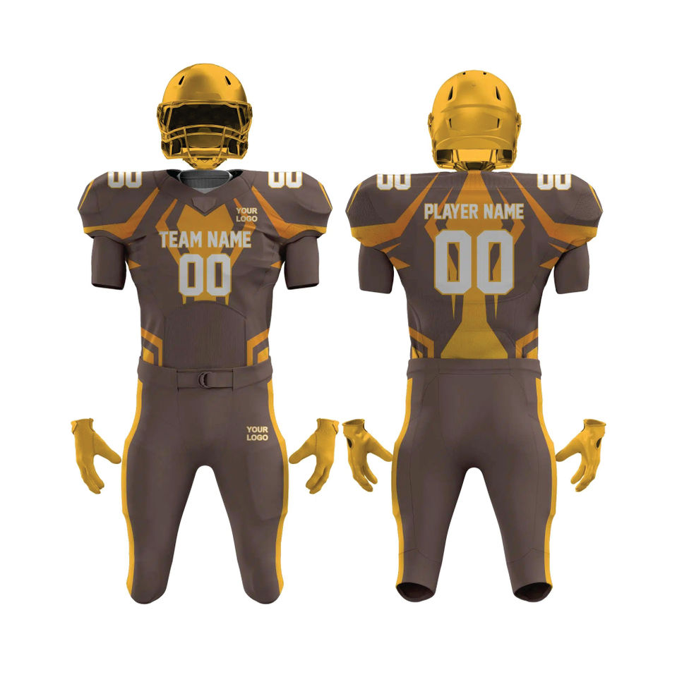 Personalizado de los hombres marrón amarillo uniforme de fútbol americano Durable Tackle Twill Jersey Pantalones Conjunto para el entrenamiento del día del juego transpirable corto
