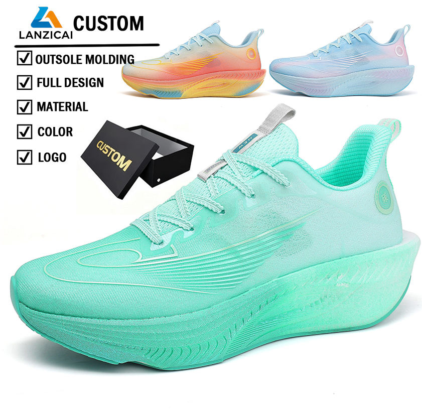 Zapatillas de Running Personalizadas para Hombre con Placa de Carbono, OEM ODM, Transpirables, con Suela Gruesa, para Maratón, Deportivas