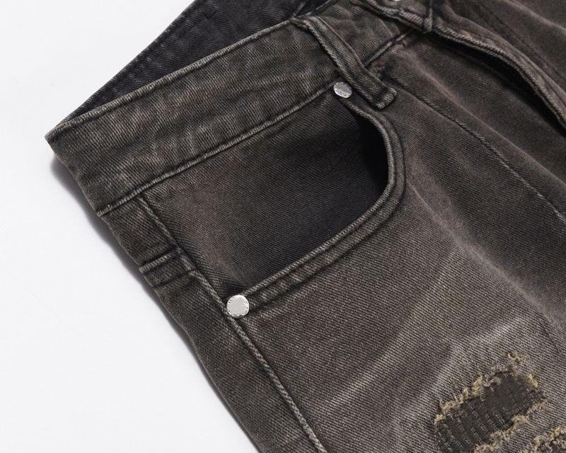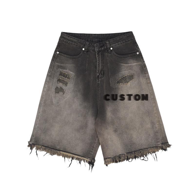 Pantalones cortos de calle informales personalizados para hombres, pantalones cortos de mezclilla lavados rasgados y desgastados con dobladillo crudo suelto y holgado, pantalones cortos de mezclilla desteñidos al sol