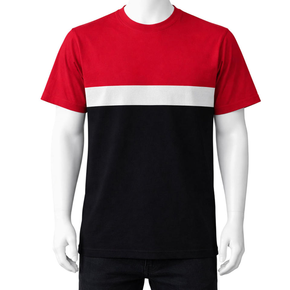 Camiseta de hombre con bloques de color personalizados, de alta calidad, 100% algodón, con paneles en contraste, para uso casual de verano.