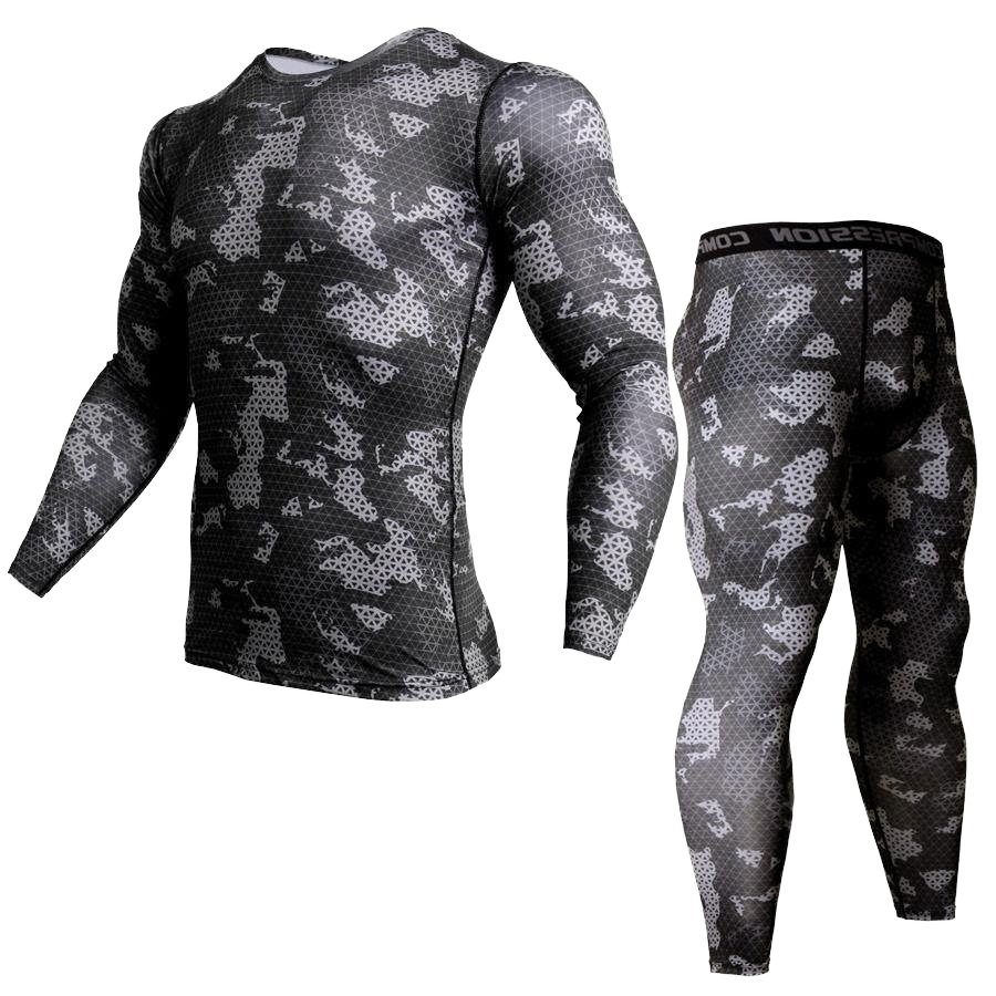 Conjunto Deportivo de Compresión Personalizado para Hombre, Talla Grande, Manga Larga, con Mallas de Compresión Elásticas Estampadas (2 piezas)