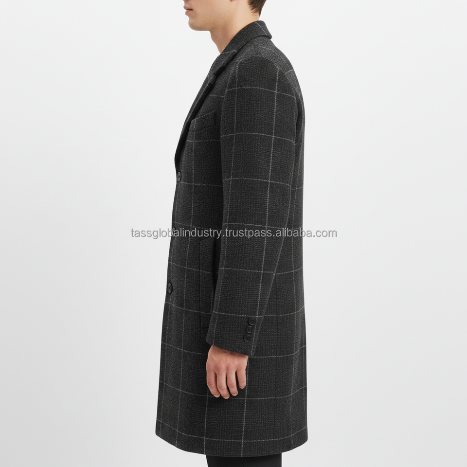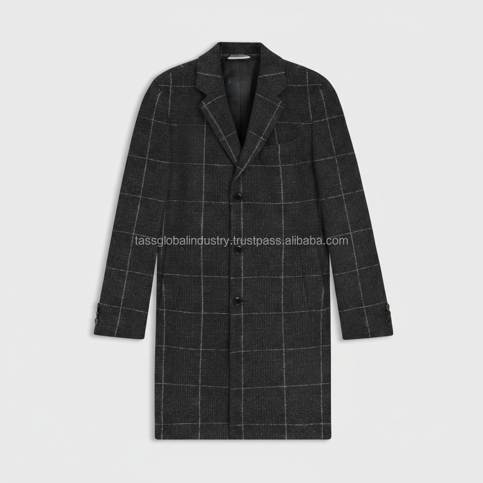 Abrigo de Lana a Cuadros Personalizado para Hombre, Fabricante de Chaquetas de Invierno OEM y de Marca Privada