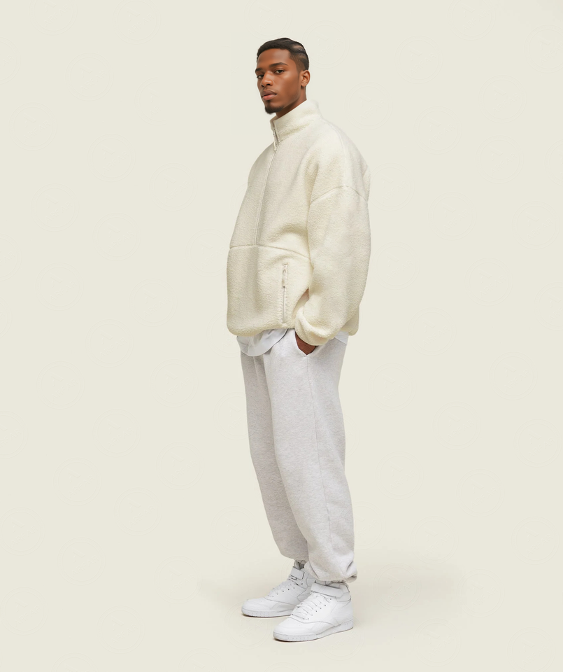 Chaqueta Sherpa Personalizada para Hombre con Media Cremallera, Forro Polar de Algodón, Cuello Alto, Tejido Transpirable, Chaqueta Acolchada de Invierno