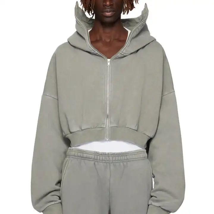 Sudadera con capucha y cremallera de felpa francesa de peso pesado para hombre personalizada 450-500gsm acabado lavado estilo callejero vintage 100% algodón ajuste regular