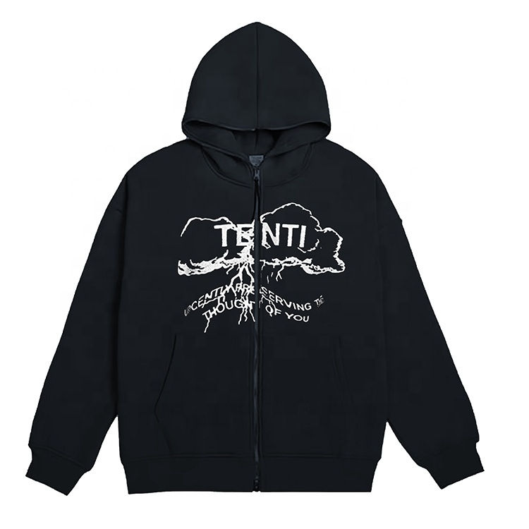 Sudadera con capucha con cremallera completa de alta calidad para hombre personalizada 100% algodón French Terry Blank Drop Shoulder Puff Printing Hoodie para hombre