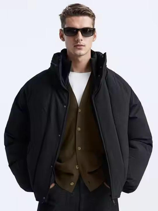 Chaqueta de Plumón Personalizada para Hombre, Ligera, Rellena de Poliéster, Tejido de Lana Transpirable, Cuello Alto, Cálida para Invierno, Uso Formal