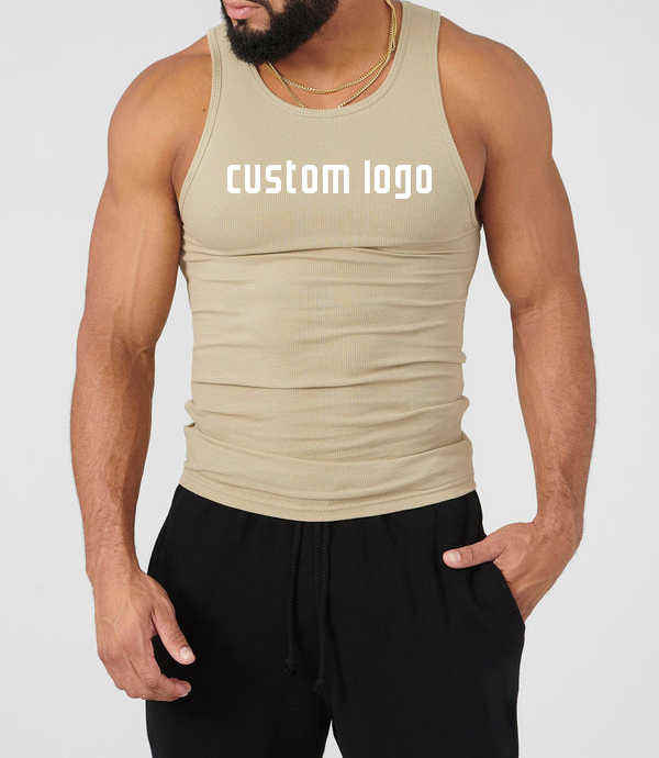 Camiseta sin mangas de algodón pesado con logo personalizado para hombre, estilo ribbed, para gimnasio, fitness, running, deportes, entrenamiento, tejida