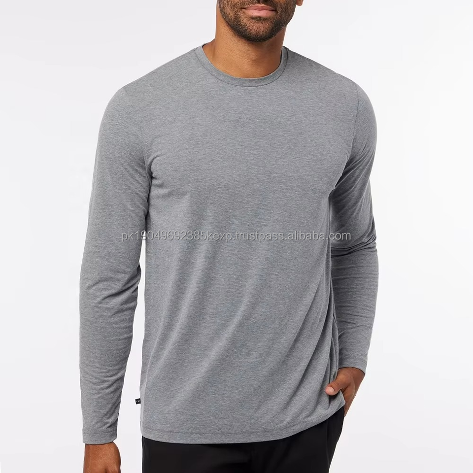 Camiseta Deportiva de Manga Larga Personalizada para Hombre, Color Sólido, Secado Rápido, Talla Grande, Transpirable, de Poliéster y Elastano, para Serigrafía