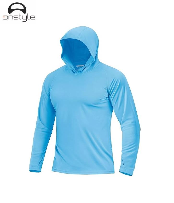 Sudadera con capucha de pesca de manga larga personalizada para hombre, 220 gramos, patrón sólido, tejido de poliéster, protección solar para exteriores, camisa en blanco