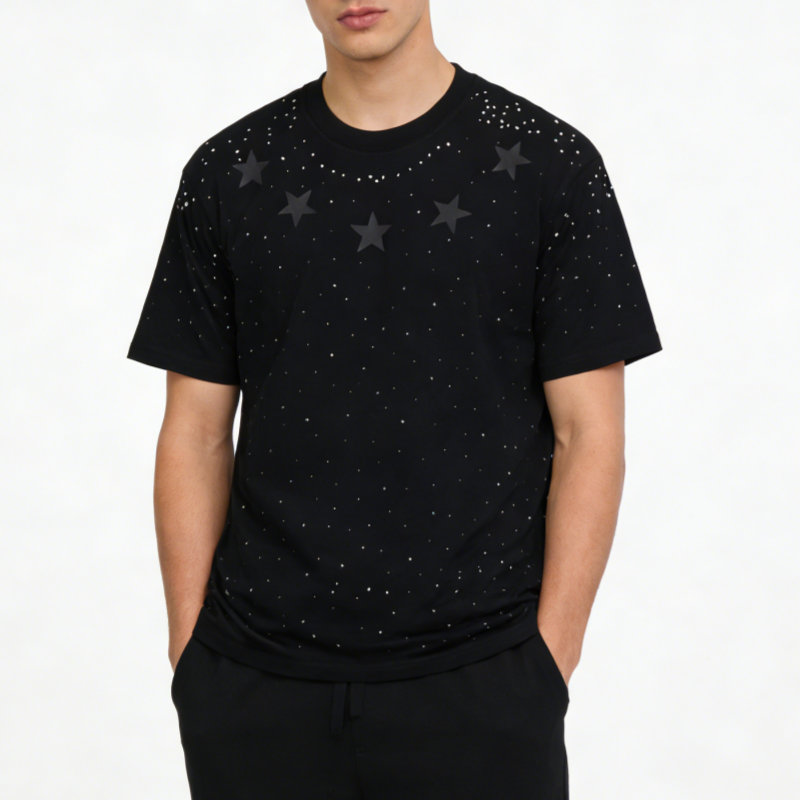 Camiseta de Verano Personalizada para Hombre, Corte Holgado, Cuello Redondo, con Pedrería, Manga Corta