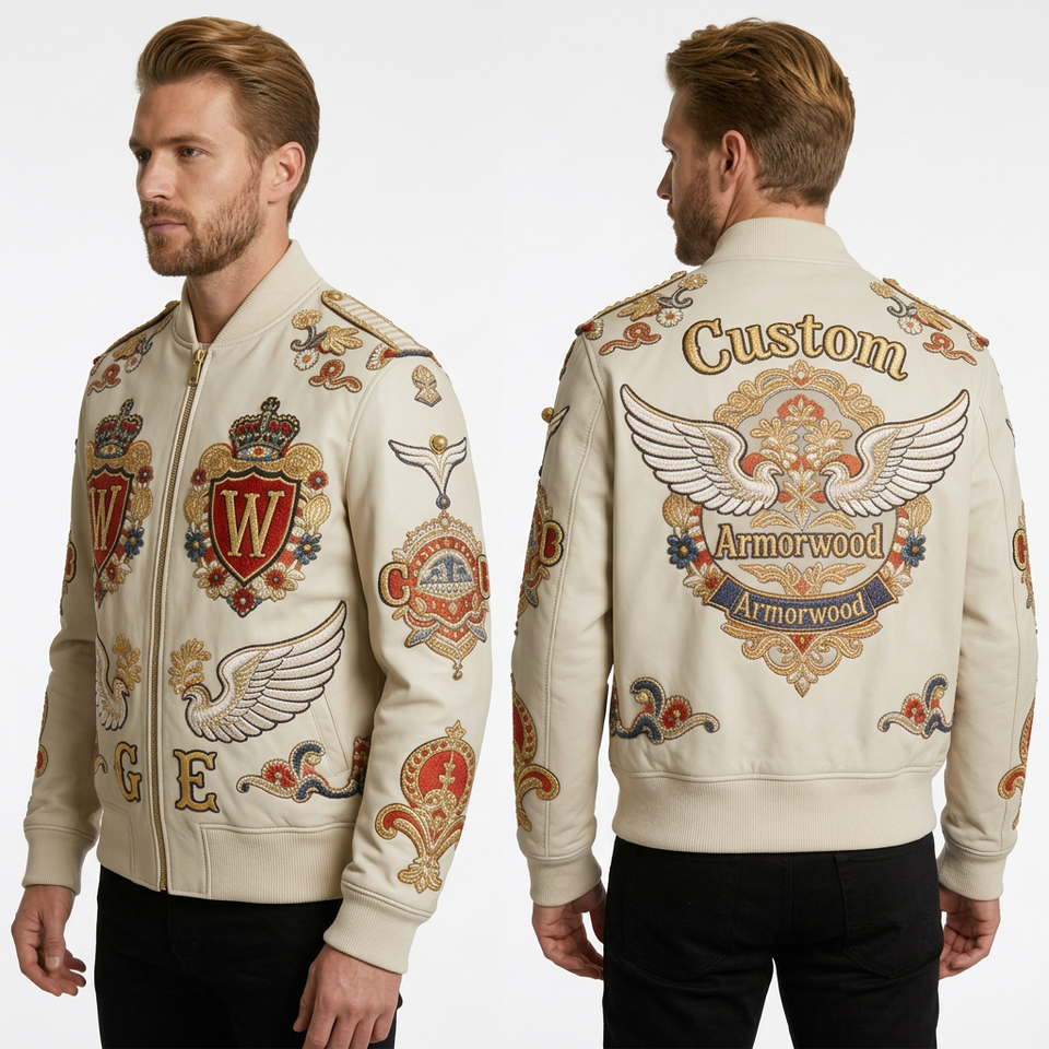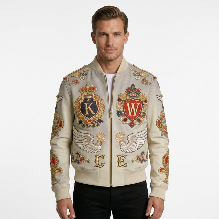 Chaqueta Universitaria de Piel de Oveja con Diseño Ombré Personalizado para Hombre, Cierre de Cremallera, Diseño de Bordado Liso