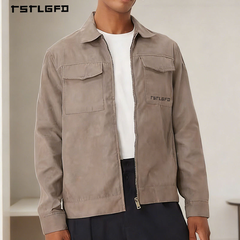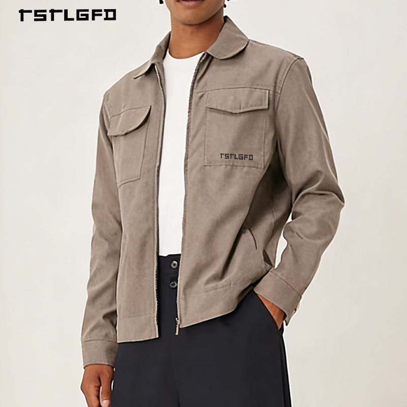 Chaqueta Utilitaria Personalizada para Hombre, Color Beige, Algodón Twill, Corte Regular, Cierre de Cremallera, Estilo Urbano, Chaquetas al por Mayor