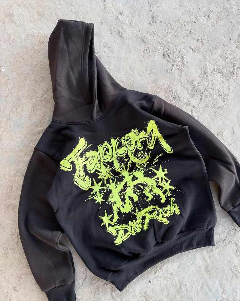 Sudadera con Capucha Extra Grande para Hombre, Lavada al Ácido, Estilo Vintage, Corte Deshilachado, Diseño Gráfico, Ropa Urbana, 100% Algodón para Invierno