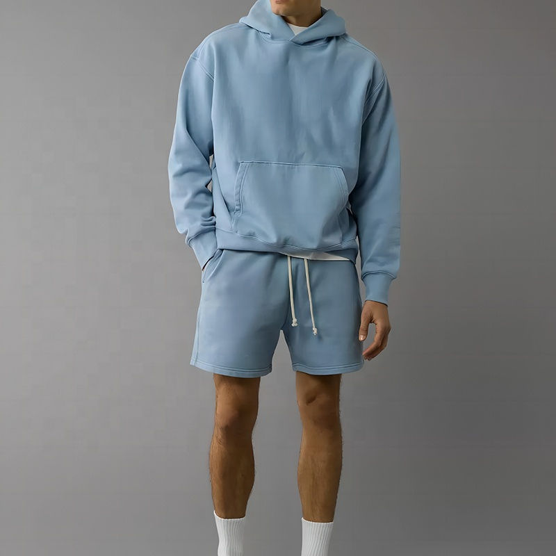 Personalizado de los hombres más tamaño Jogging Hombres Sudaderas con capucha y corto de dos piezas Hombres Sudadera con capucha Conjuntos de pantalones cortos