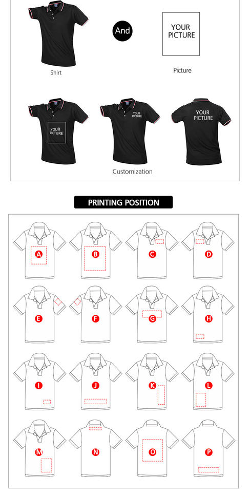 Posición del logotipo:Frente, Espalda, Manga izquierda, Manga derecha, Dobladillo inferior, Cuello trasero