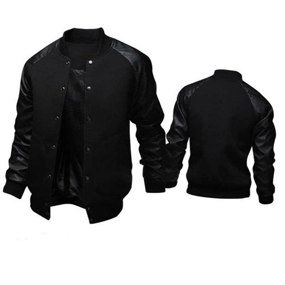 Chaqueta Bomber de Béisbol Varsity Personalizada para Hombre, de Primera Calidad, con Parche de Logotipo Bordado, Chaqueta Negra de Cuero Personalizada para Hombre