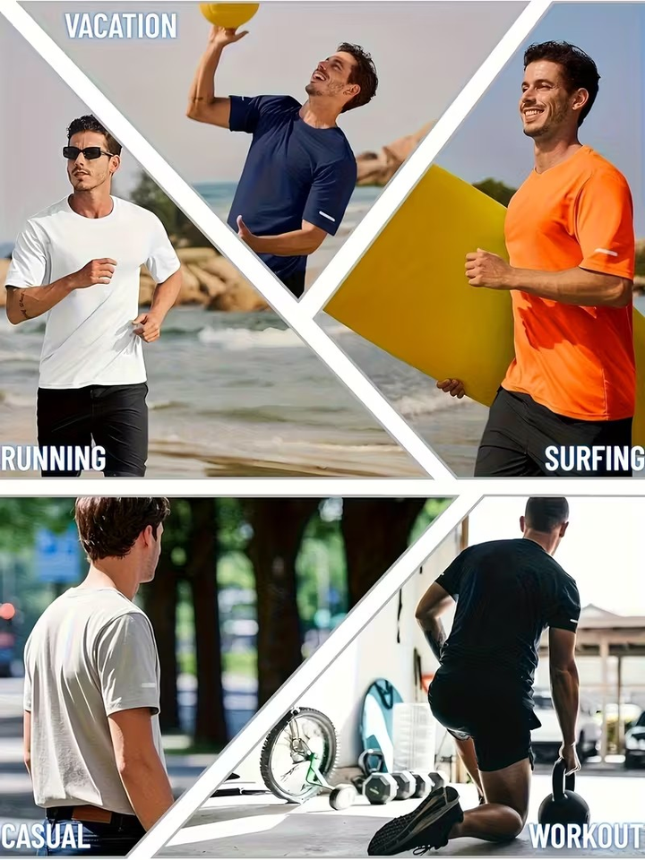 Custom Men's Quick-Dry Sports T-Shirt Made from Breathable Moisture-Wicking Fabric with Customizable Design Areas on The Chest