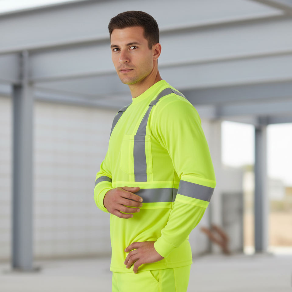 Camisa de Seguridad Reflectante Personalizada para Hombre, Alta Visibilidad, ANSI Clase 2, LED Intermitente, Impermeable, Poliéster, Logotipo Personalizado, Ropa de Trabajo, Mangas Largas