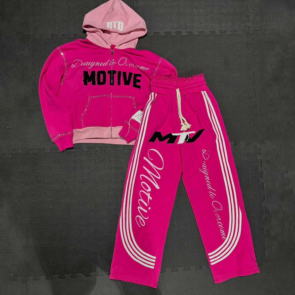 Personalizado de los hombres de diamantes de imitación desgastado bordado chándal Streetwear chándal holgado rayas pantalones de chándal y Sudadera con capucha conjunto