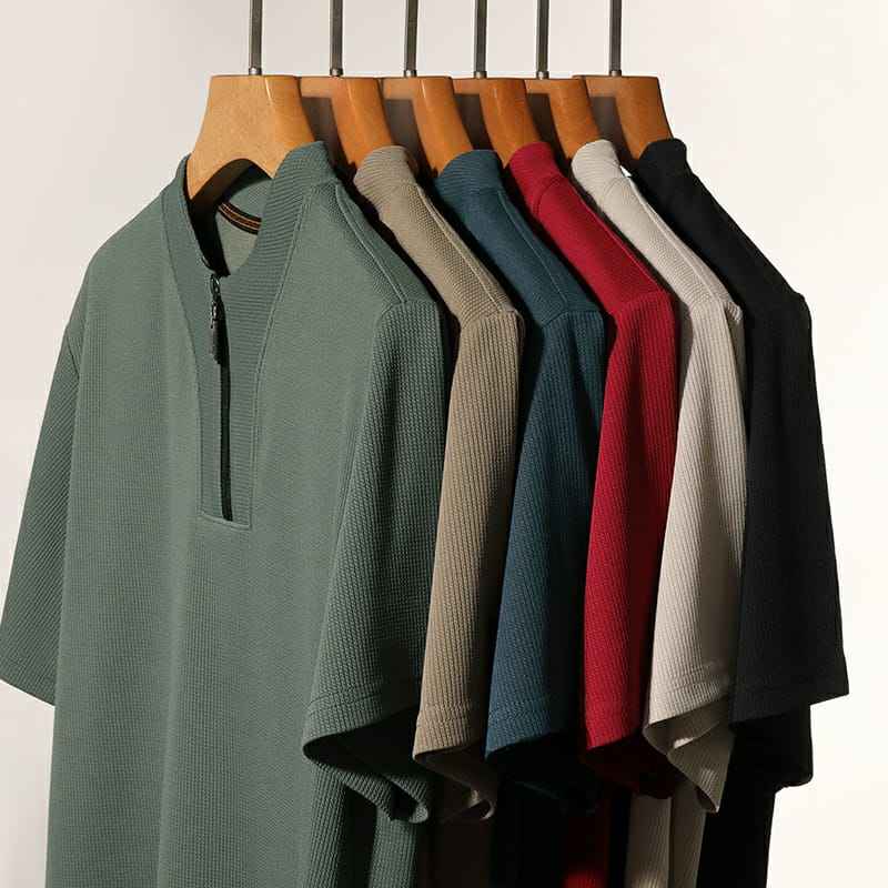 Cremallera de cuarto de manga corta personalizada para hombre para camisetas de polo Cuello de golf Atlético informal en poliéster Spandex Servicio OEM