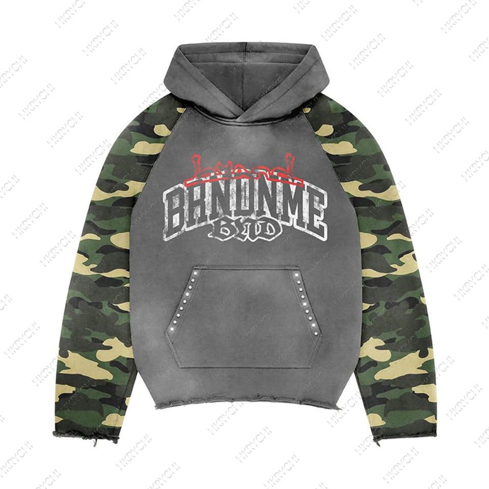 Sudadera con capucha oversize de estilo urbano para hombre, personalizada, con lavado ácido y efecto desgastado por el sol, con cremallera, para otoño, de tejido de rizo de 320g, con pedrería, de secado rápido