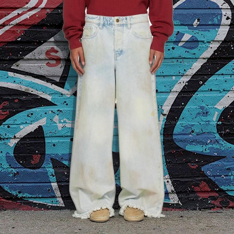 Pantalones Vaqueros de Mezclilla de Algodón Desgastados de Corte Holgado y Cintura Media-Alta para Hombre, Estilo Urbano Personalizado con Diseño Estampado y Pierna Ancha