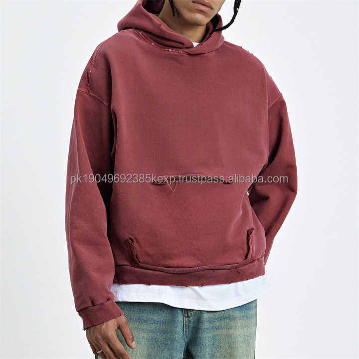 Ropa de calle personalizada para hombre, sudaderas con serigrafía, Jersey desgastado, lavado ácido, Hip Hop, Vintage, recortada, Sudadera con capucha para hombre