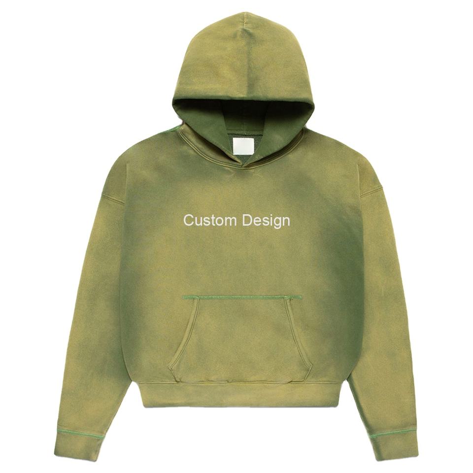 Sudadera con capucha de algodón de 100% de peso pesado de otoño unisex para hombre con bordado estampado de hojaldre y logotipo personalizado