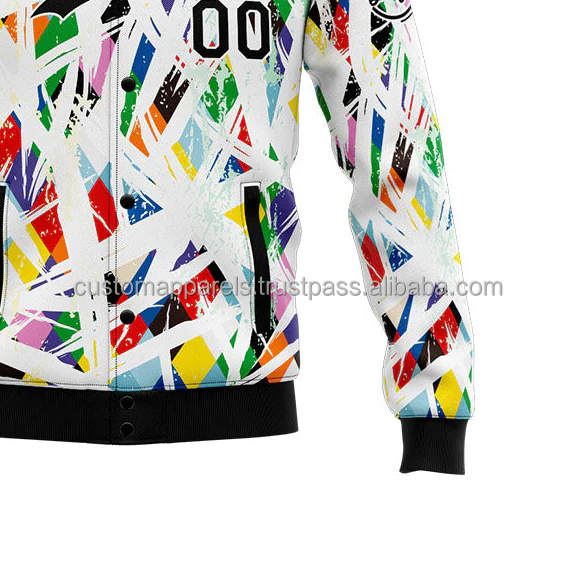 Chaqueta Varsity Personalizada para Hombre MCACVJ-237, Diseño Moderno, Estilo Único, Cuello Alto, Decoración Bordada, Logotipo Frontal, 100% Lana