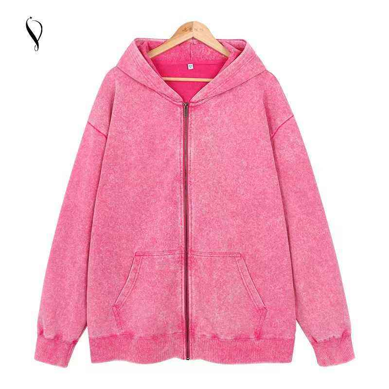 Sudadera con Capucha Personalizada para Hombre, Estilo Vintage, Lavada al Ácido, con Cremallera Completa, Estilo Urbano, Gruesa, con Logotipo
