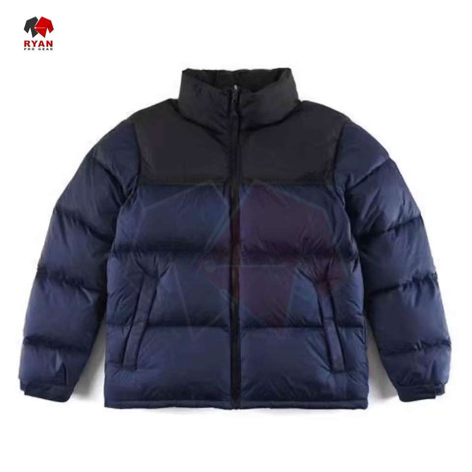 Chaqueta acolchada de invierno personalizada para hombre con cuello levantado, tela tejida de estilo informal, teñido liso y diseño de logotipo personalizado