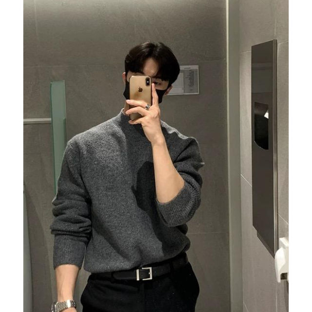 Sudadera de invierno personalizada para hombre, prendas de punto de gran tamaño informales vintage gruesas con jersey de cuello simulado, ropa duradera con logotipo frontal