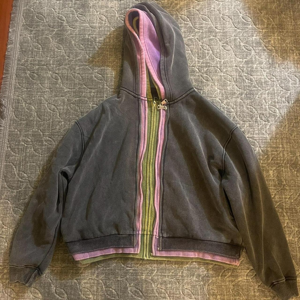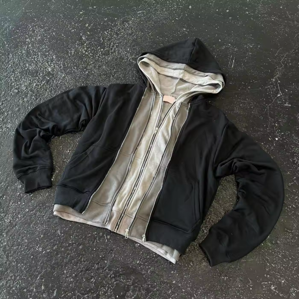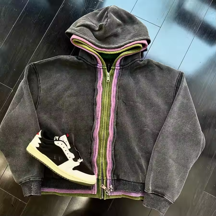 Sudadera con Capucha de Forro Polar Triple Capa para Hombre, Personalizada, con Efectos Desgastados, Logotipo Personalizado con Pedrería, Bolsillo, 100% Mezcla de Algodón