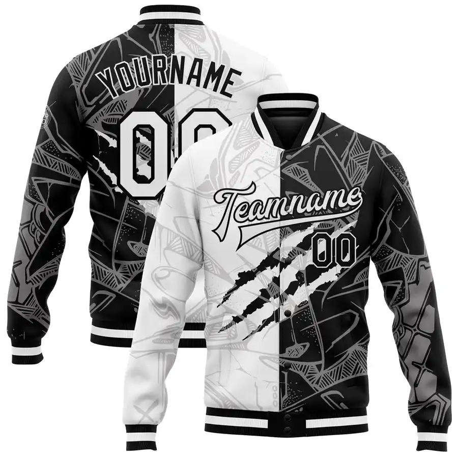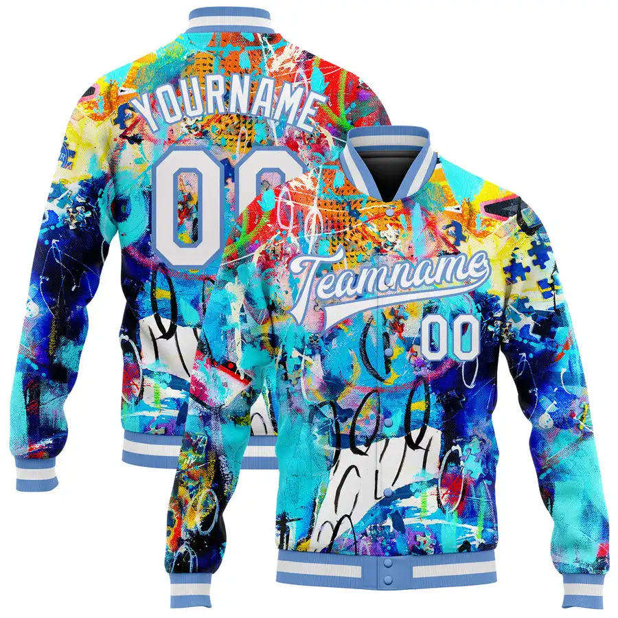 Chaqueta Varsity de Invierno Personalizada para Hombre con Graffiti y Bordado, Estilo Urbano, Chaqueta Bomber Letterman para Hombre