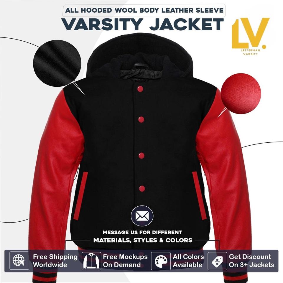 Chaqueta universitaria con letras de lana personalizada para hombre, recubierta en tela de lona azul y rojo, parches de logotipos bordados Boomletcorp