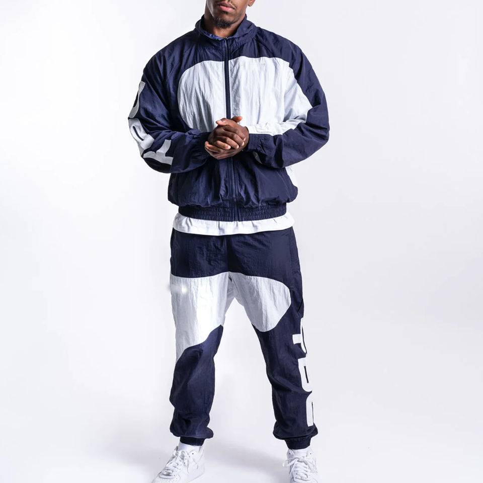 Conjunto Deportivo Personalizado para Hombre, Chaqueta Cortavientos con Cremallera, Pantalón Deportivo Arrugado, Transpirable, Manga Larga, 100% Poliéster, Unisex, Diseño de Paneles