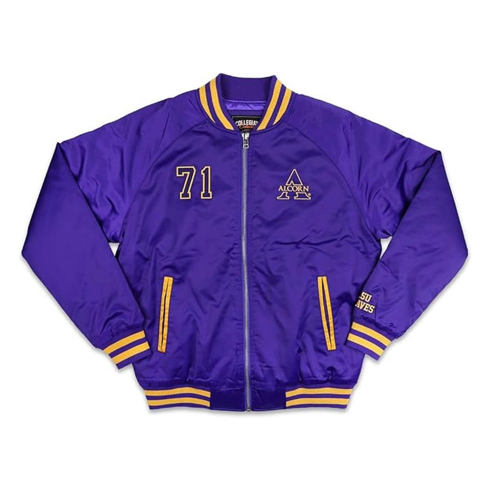 Chaqueta Deportiva de Satén Personalizada de Invierno del Equipo Alcorn State | Béisbol Masculino | Soporte | Logotipo Bordado | Fabricante OEM al por Mayor